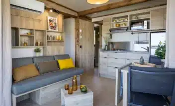 Le Moréa XL peut accueillir jusqu’à 5 personnes, avec 2 chambres confortables, un salon lumineux et une cuisine entièrement équipée avec lave vaisselle.
